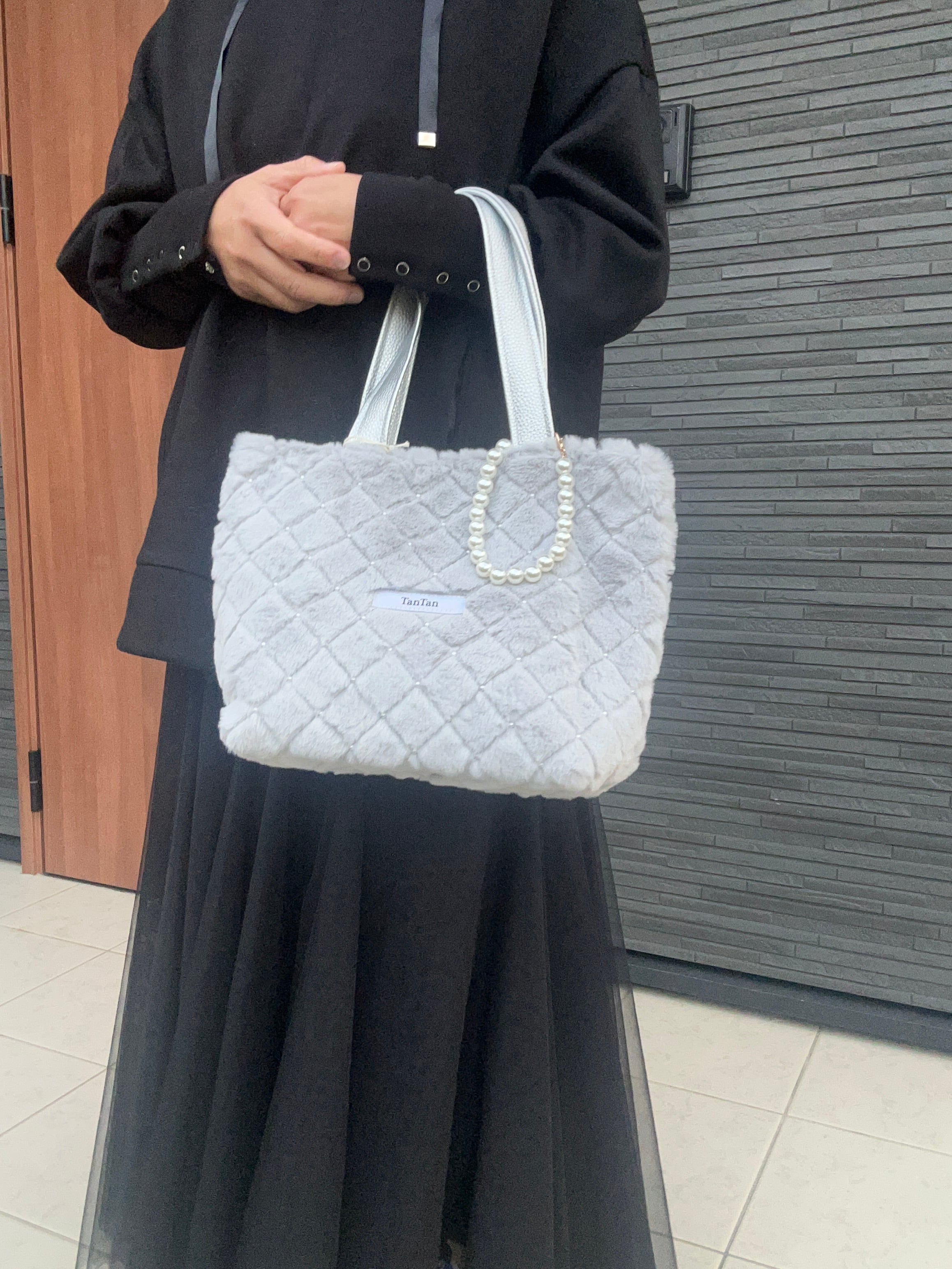 ふぁふぁ シルバーパールバッグ 大きすぎず 小さすぎない 暖かいバッグ