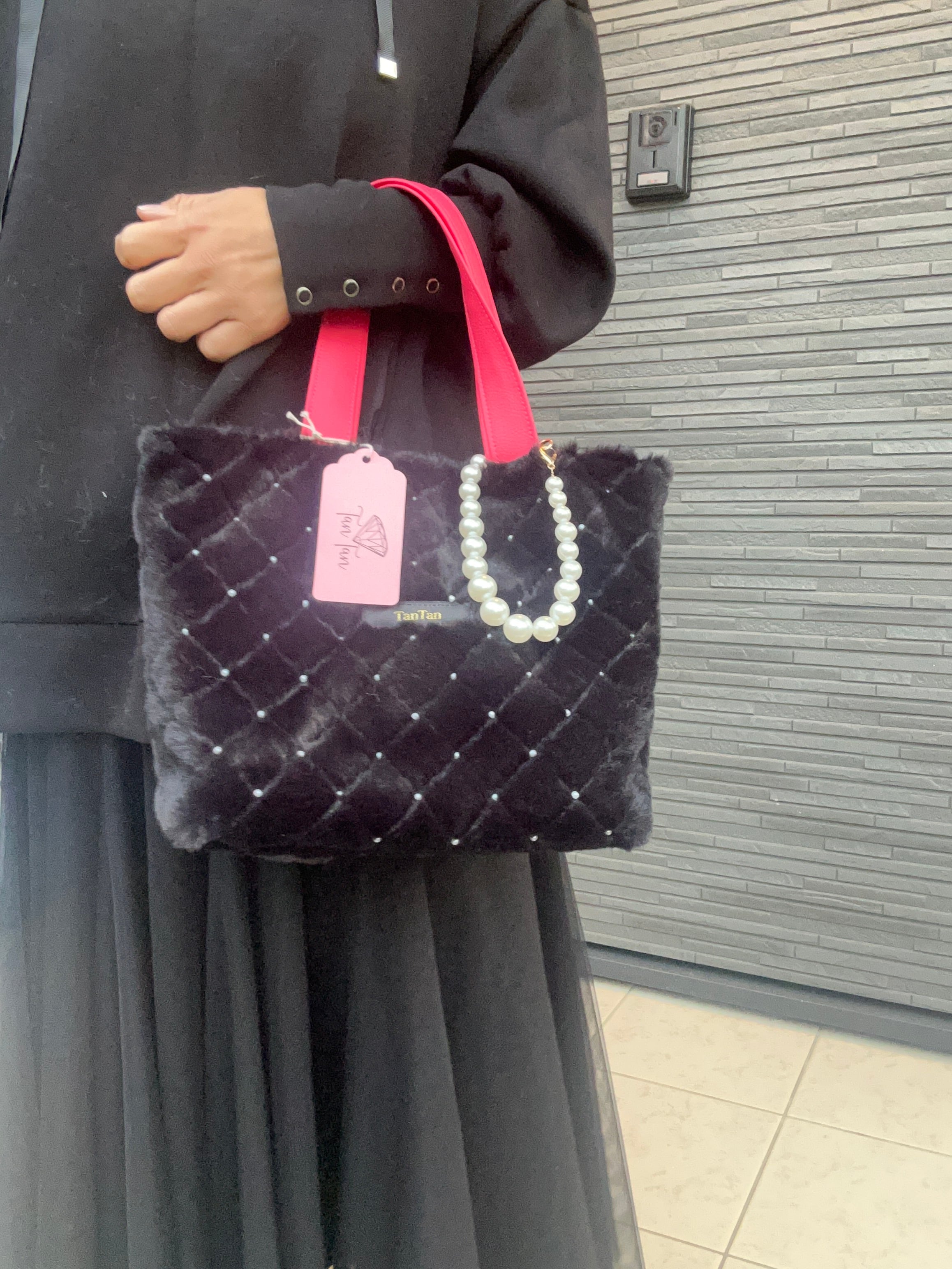 ブラックパール ふあふあ 持ち手ピンク